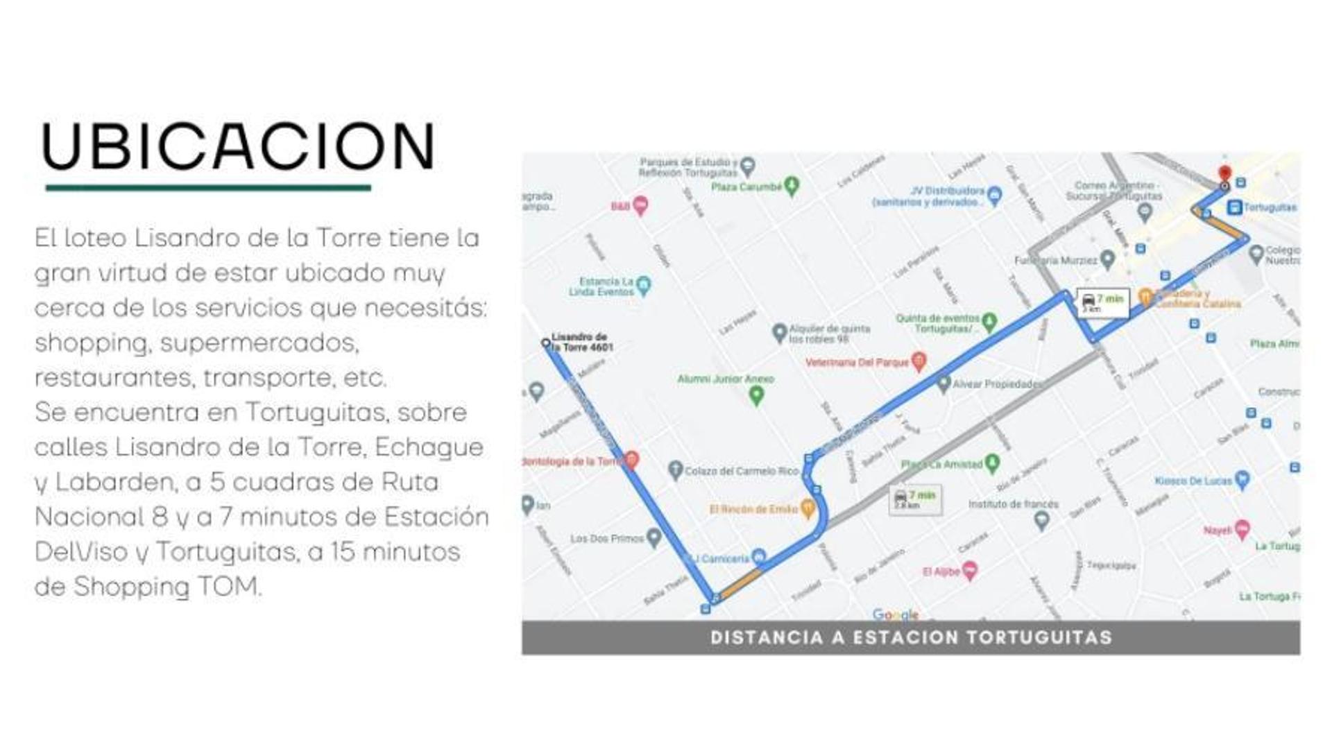 El Lote se encuentra sobre Calle Labarden a mts de Lisandro de la Torre , con excelente acceso a Calle Maria Drago y al centro de Tortuguitas.